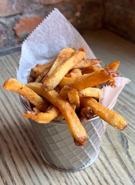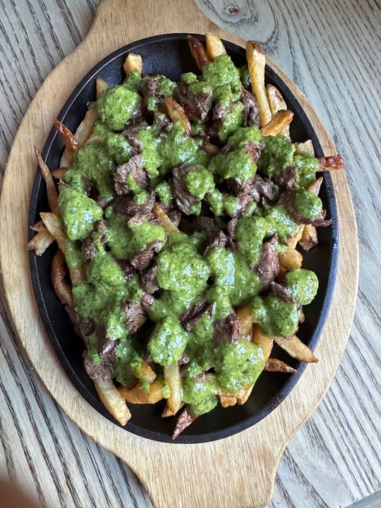 Fresh cut french fries, melted cheddar, bacon, pickled jalapenos, scallions. Served with salsa rojo and sour cream on the side.