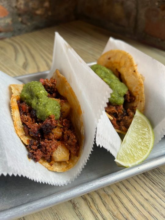 House-made chorizo, potato, salsa verde, corn tortilla.