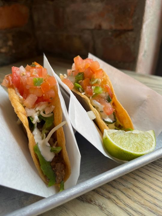 Seasoned ground beef chuck, lettuce, crema, cheddar, pico de gallo, crispy flour tortilla shell.